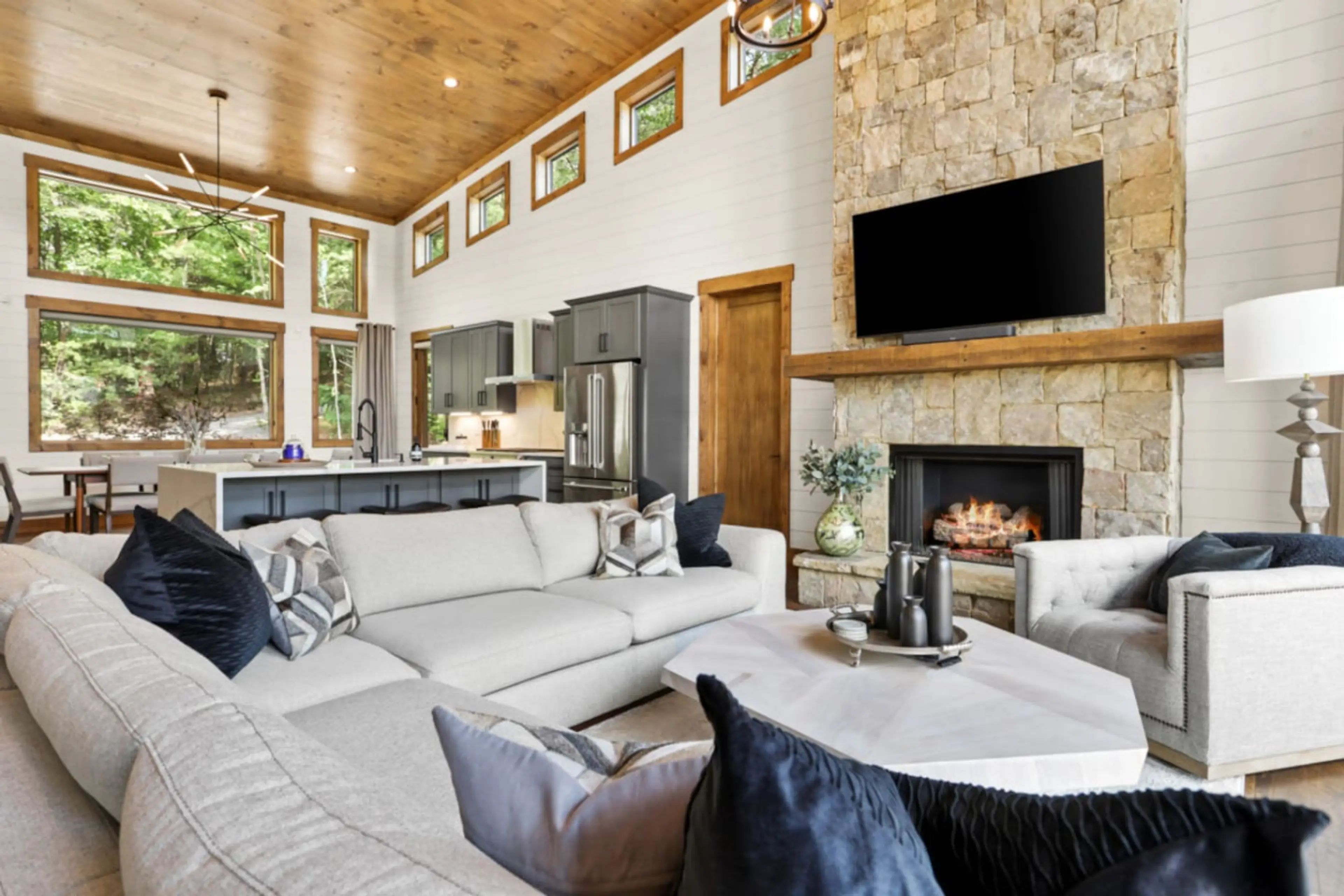 Escape to luxury in this stunning Blue Ridge mountain cabin—just 5 minutes from DT. Enjoy long-range views, 4 stone fireplaces, expansive decks, a hot tub, & a new outdoor space with a fire pit, putting green, & hammock. Features include a well-stocked kitchen, wet bar, EV charger, fresh linens, and...